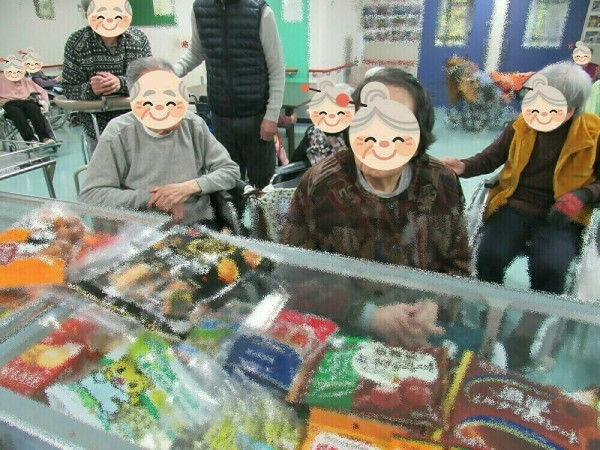 2回/月開催されている施設内移動売店の様子です。開店間もなく大繁盛です。