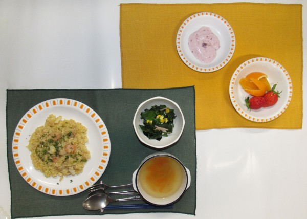 2月のお誕生日会の様子です。お誕生月を迎えられた方へ心のこもったお誕生日カードのプレゼントです。カードを受け取り、にっこり微笑まれる方、涙ぐまれる方。皆さんでピアノの演奏を愉しんだり、得意なカラオケに聴き入ったり、と穏やかなひとときを過ごされました。お誕生日会のお祝膳はシーフードたっぷりのパエリアにほうれん草のサラダ、コンソメスープに苺のフルーチェと季節の果物(苺とでこぽん)と洋風のメニューです、いつもとは少し趣きの異なるメニューも皆さんからとても好評でした。