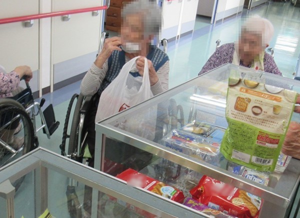 ガラスのショーケースに並んだお菓子をご自分で選んで購入されます。