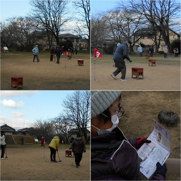 安倍史跡公園でグラウンドゴルフの活動をされている皆さんの様子です。地域包括支援センターのぞみの職員が地域の通いの場への取材でお伺いしました。朝から雪がちらつく寒い中、感染予防に気を使いながら愉しそうにプレーされていました。地域包括支援センターのぞみ発行の『のぞみ通信1月号』と奈良県消費生活センター発行の『高齢者・障害者見守り通信』と厚生労働省発行の『集まろう集いの場』を皆さまにお渡ししましたところ、休憩時間に見て下さっていました。