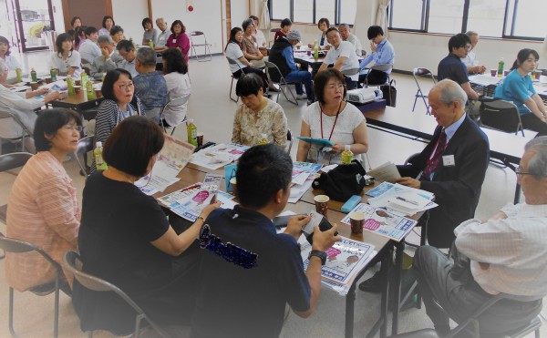 平成30年度第1回安倍小学校区地域ケア会議の様子です。会場はいわれ会館、参加者は自治会の区長さんをはじめ、民生(児童)委員さん、福祉委員さん、地元の開業医さん、各事業所のみなさん、社協職員さんや行政職員さん等総勢42名の方がお忙しいなか参加くださいました。今回は奈良県社会福祉協議会の方から全国的な課題であったり、日常生活自立支援事業や成年後見制度についての講演も戴きました。参加されている方から、利用料はどのくらいかかるのか?といった質問もとびだし、興味の深さが伺えました。安倍小学校区では昨年一年かけて、あべふれあいマップ(地域資源マップ)作りを通して我がまちの集いの場の可視化を行いました。安倍小学校区では各大字毎に『いきいき百歳体操』や『ふれあいサロン』が開催され、グラウンドゴルフの集まりも活発に行われ、住民自らが地域を支える活動を行ったり、地域住民の暮らしのための拠点作りが行われています。また、各介護事業所においても、それぞれ、カフェであったり、イベントが定期開催され、地域全体で地域づくりをしている気運の高まりが感じられる地域です。