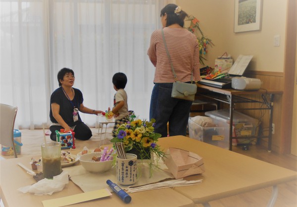 6月の忍阪ふれあい会館でのにこにこカフェの様子です。カフェは10時~16時までのオープンです。今日は七夕が近いこともあって、短冊にこよりをつけてお願い事をかきました。本日はこどもの集いの日で、いつもは10名程参加されるとのことでしたが、今日は参加者が少なかったです。参加者の方からの介護相談があり、桜井市地域包括支援センターのぞみの職員が相談応対させて頂きました。介護タクシーやデイサービスの利用等についての質問がありました。次回のカフェの開催は7月25日(水)の予定です。
