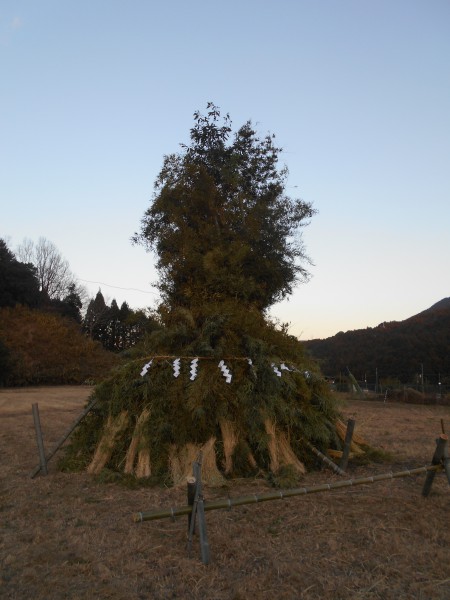 倉橋区の大とんどの様子です。年に一度の恒例行事。昼過ぎから、近くの竹50本程を用いて、おおよそ半日近くかけて火がまわっても崩れにくいようとんどを組みます。消防団のバケツリレーの後、とんどに点火。あっという間に火が回り、竹の割れる大きな音が次々と空に響きます。『年々人口が減っていく地区ではありますが、この日ばかりは里帰りも兼ねて皆が集まります。行事として残していきたいものです』と区長さんがおっしゃっていました。老人会の皆さんが準備された長い竹に搗き立ての柔らかい御餅を刺し、とんどにくべて、鍋にたっぷり用意されたぜんざいに熱々の御餅をいれ、皆さん召し上がってみえました。