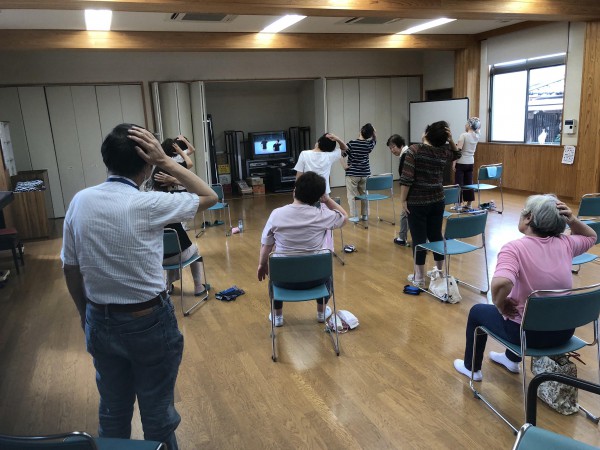 谷いわれ会のいきいき百歳体操の様子です。毎週金曜日10時から谷公会堂で活動されています。『先日、巡回指導に来てくださり、DVDをいただいて』と喜んでおられ、いきいき百歳体操の前にされていました。立ってできる方は立って体操されており、皆さん、気に入っておられる様子でした。10月19日のいきいき百歳体操交流会の案内をすると、『(会場まで)歩いて行けるから助かる』『行きたい』という声が多かったです。本日の参加者は15名(男性1名、女性14名)でした。