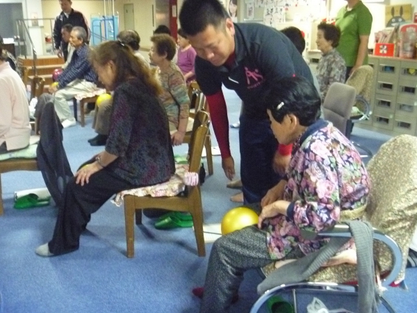 2014年05月17日 カテゴリ:地域包括支援センター便り ふれあい大和 大和桜井園デイサービスセンターにて「ふれあい大和」が開催されました。 柔道整復師の先生たちに習って、ストレッチ、タオルやボールを使った運動を行いました。