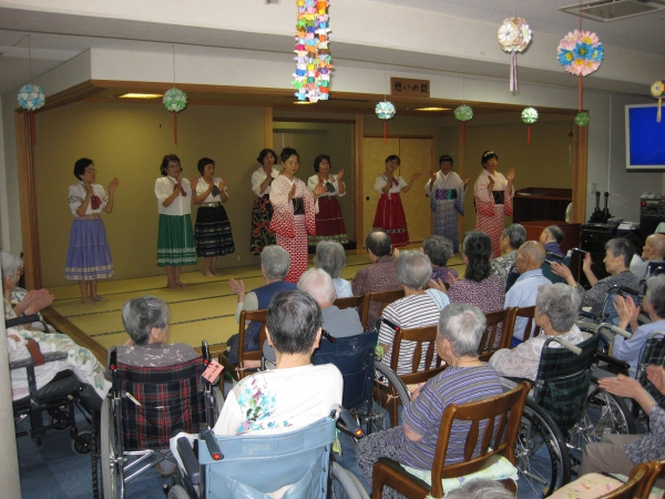 デイサービスセンターにてボランティアグループによる踊りとフォークダンスの慰問があり、楽しいひと時を過ごしました。