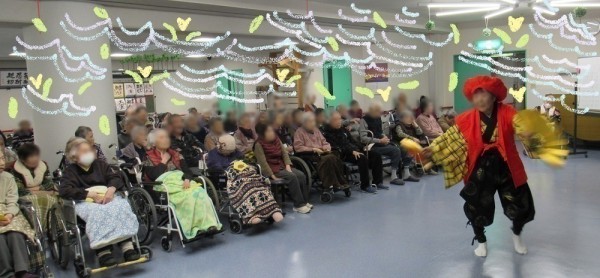 1月のお誕生日会の様子です。踊りにカラオケ等と楽しいひと時でした。また、お誕生日を迎える皆様からひと言づつお言葉も戴き、会場の皆さんと一緒にお祝いしました。